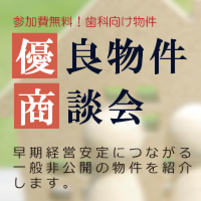 医院の早期安定につながる、一般非公開物件の優良物件を紹介します。 一般入手困難な大手テナント物件をご紹介! 歯科医院として高い収益性が見込めるため、売切れ必至! ☆詳細はこちら:https://u.insite.co.jp/medc-bukken2018 歯科開業や分院展開をお考えの先生向けに「物件商談会」を開催します! 大手SC・スーパー共同出店・コンビニやフランチャイズ閉店情報など 一般非公開で希少な優良物件の中から、早期経営安定につながる物件をご紹介します。 ★弊社は各企業間と「機密保持契約」を結んでいるので、一般公開前に優先してご紹介が可能です★ ○開催概要 10時~18時のご都合の良いお時間にお越しください。 当日のとびこみ参加も可能ですが、混み合った場合お申込頂いている方優先でご案内させて頂きます。 事前にお申込頂き、ご来場目安時間やご希望地域などをフォームに記載頂ければ、当日のご案内がスムーズになります。 〇エリア 東京/神奈川/千葉/埼玉/茨城/栃木/群馬/長野/山梨/静岡/愛知/大阪/京都/兵庫など ご希望地に合せた詳しい解説も致します! ↓お申込みはこちら↓ https://u.insite.co.jp/medc-bukken2018