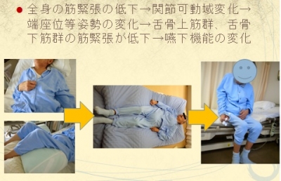 【長期療養生活6年、ADL全介助の症例に、局所的ではなく、全身の筋緊張を一度に落とすポジショニングを行ったところ、拘縮が変化して端座位や自立、20日後にお楽しみのゼリー食を用いた摂食嚥下訓練の介入に至った。】 上記の内容で、2013年9月。岡山開催の第9回摂食嚥下リハビリテーション学会へ口述発表する。 本セミナーは、 この原理と、症例報告から全身の筋緊張制御を行うことでの、呼吸筋、横隔膜、呼吸数の低下(過呼吸の変化)、舌骨上筋群、舌骨下筋群の過緊張の改善、摂食嚥下の変化を報告し、『p×s=mg』の物理学的根拠から認知、高次脳機能、筋収縮様式の変化を熟考し考察する。 【理論となるポジショニングの学術的評価】(過去の文献から引用) 近年、身体質量と重力を拮抗させた環境で行うポジショニングアプローチを行う事で、筋緊張が安定し、関節拘縮の変化と長時間持続する臨床研究が発表されました。ニュートン物理学、第三法則、作用-反作用の法則の、反作用を限りなく小さくするという、微小重力相対性理論の仮説を実証した結果で、低反撥マットレスを数枚重ねてポジショニングを行うことで仮説の立証に成功しました。この環境をRehabilitatuon & Engineering Design -R.E.D.-とし、2010年より研究が開始されました。 身体にかかる重力が小さくなり、収縮の必然性がなくなる筋、腱は、柔軟性を取り戻し、神経や感覚入力と相互作用していきます。変化した身体状況は自律神経系の安定(副交感神経優位)や呼吸、循環へと波及し、過緊張、低緊張など異常筋緊張の安定に結びついていきます。 代表的な例として、長期療養生活を送る、長い年月をかけてもたらされた過緊張や関節拘縮の変化と循環器系の安定例は、これまでの臨床場面では見られなかった新しい発見と、今後の医療に大きく影響する事が示唆されました。低反撥マットレスを身体質量の比重に合わせて積層する環境設定という単純性は、高い再現性と介入者要因に依存しない筋緊張制御となり、誰が介入しても同じ結果となります。このような現象、結果の蓄積により関節拘縮の概念をも、確実に変える力を持っています。 また、このような筋組織の変化と過緊張、低緊張など異常筋緊張の安定、重度の呼吸器疾患、心疾患患者の心拍数、呼吸数、血中酸素飽和度、血圧の安定は、ワッサーマンの歯車に代表される、筋、呼吸、循環の効率と、三者に対し、同時に介入し結果を出した背景が否めず、内部障害への新たなアプローチとしても期待されています。 この研究結果を数年にわたり、当学会以外の全国の著名学会に発表、共有し、2015年5月に理学療法の全国学会、6月には作業療法の世界学会にも、2演題の演題採択がされました。 この研究過程の中で、嚥下機能に働きかける直接的なアプローチではなく、ポジショニングという間接的に過緊張を緩和した症例に長期療養生活から嚥下訓練に移行した症例がありました。これを第19回 日本摂食嚥下リハビリテーション学会 学術大会 9/22 岡山にて発表したところ大変な反響がありました。 このため当学会では、この事実を公開するとともに、局所的ではなく全身的な筋緊張制御や過緊張の緩和が摂食嚥下機能に及ぼす影響を提案し、その技術論及び実技を学んでいただきます。
