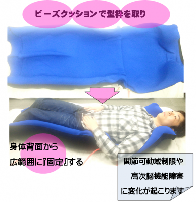 ビーズクッション採型機を用いたポジショニングアプローチです(2016.11.19東京都作業療法学会にて発表)