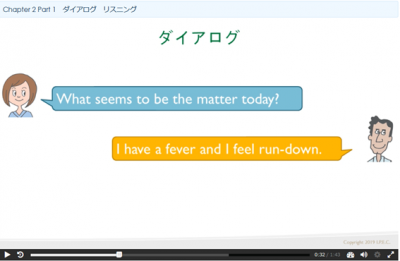 ・全体を通して、看護英語テキストだけではカバーしきれない語彙・表現なども詳しく説明されていて、受講しやすかったです。ロールプレイも映像が相手をしてくれるので、看護師役、患者役の両方が練習できてよかったです。 ・文法の説明を聞くことができてよかったです。ふと、この言い回しは、何故なのだろうかと疑問に思っていたことがあったため、すっきりました。1つのチャプターで学ぶ内容が充実しており、テキストと併せてしっかりきっちり学習できる内容だと思います。 ・とても楽しく勉強出来ました。テストもワクワクしながら開いてみました。看護の現場で普段使われることを取り入れてくれていたので良かったと思います。