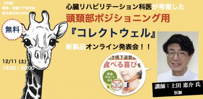 コレクトウェルの考案者である上田恵介先生は、心臓外科医として数々の臨床現場・また、後進の指導・育成にも長年にわたり多大なる功績を残されてきました。 心臓外科の過程を通して、リハビリテーションの重要性を強く感じ、現在、心臓リハビリテーション科医、リハビリテーション科医として活躍されております。 そのような経緯の中、リハビリテーションの場や訪問介護・看護の場で、患者さんや介護される方の頭頚部をポジショニングしたいと思われることやぐらつく頭頚部を何とかしたいと思われる場面が多くみられます。 在宅看護や介護の場では、ポジショニング用のクッションを使うことが一般的ですが、さらに効果的にポジショニングするために、新商品『コレクトウェル』を考案・開発致しました。 この度、一人でも多くの方が少しでも快適な生活をおくることをサポートできるようにと、考案・開発された『コレクトウェル』の製品発表会の場を設けさせていただきました。 本製品発表会は、様々な情報収集の機会として、また、質疑応答や皆様とのディスカッションの場も設けていきますので、是非、お誘い合わせの上ご参加ください。