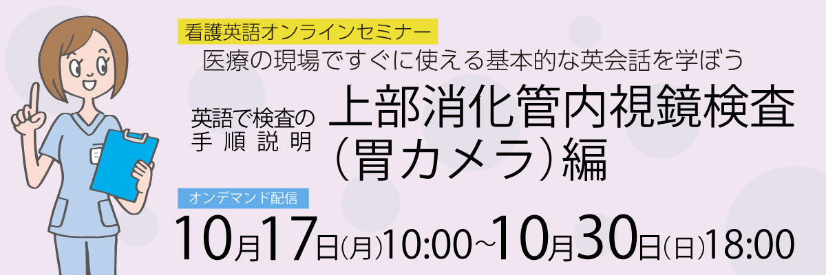 10/17(月)~10/30(日)配信 ★日本語で解説するので初めて医療英会話を学習する方にもおすすめ★