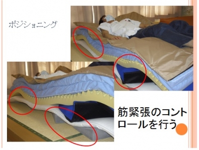 慢性期、起居動作、ADL全介助から座位自立と自発言動が表れた症例 ※※※このページにある画像を見てください。 症例の状態と、どのような変化が起こったかをご確認ください※※※ 慢性期で全介助の生活を6年間続けてきた女性で、全身の筋緊張が高く、拘縮していると判断されていた症例です。 関節拘縮や円背、側湾、失調症状、バランス不良、筋力低下、廃用症候群、褥瘡がある方や二次障害を重複している方です。周囲からのケアやアプローチは難渋し、シーティング技術だけでは座れない人はたくさんいらっしゃることでしょう。 その場合、リクライニング車椅子やチルトリクライニング車椅子が必須になりますが、とても高価なシーティングクッションや車椅子を購入する事になりますし、場合によっては座位保持装置の申請も必要になるでしょう。(現在は介護保険のレンタルもありますが、販売価格が高価であるため、貸与点数も高値になります。そうなると他の必要なサービスにも影響していきます。) ■しかし、臥位から筋緊張制御を行い姿勢全体を変えてしまえば、普通型車椅子でも十分座れるようになります。 ■これがポジショニングからシーティングを行う原理です。 身体全体にかかる圧が数mmHgとなる。身体にかかる圧が骨を作り、循環が発生し、呼吸を行ないます。脚は大地を踏み、その安定から体幹の運動や手の作業を行います。重力があるからこそ、我々は生活が出来ているはずです。しかし、障害を呈した方はこの状況が大きな負担となります。 生誕より獲得してきた地球上での重力の使い方が全く通用しなくなるからです。 これでは、真っ直ぐに座る、立ち上がる、歩く等の運動はとても難しく、生活をしていくためには、その身体状況で再び重力環境下での身体の動かし方を学び直さなくてはなりません。 それを座位からではなく、臥位から行なうのがポジショニング To シーティングであり、その理論が数mmHgでポジショニングを行なう微小反作用環境のアプローチです。 この最新の知見を共有しましょう。