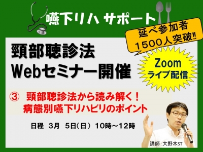 嚥下リハビリは、食べ物を用いる「直接訓練」と食べ物を用いない「間接訓練」に大きく分けられます。「直接訓練」については、嚥下評価や食事形態・姿勢・介助方法の工夫について、多くの書籍や研修会で学ぶことができます。しかし、「間接訓練」についてはどうでしょうか?アイスマッサージ、口腔ケア、嚥下体操などの画一的な内容を、「直接訓練」の“補助的”に学ぶ程度なのが現状ではないでしょうか。 「むせるからトロミをつけましょう」的に、パタカラ体操をしていたって効果がでることはないでしょう。「パンダの宝もの」や「寿限無寿限無」に替えてみたって同じです。当然ながら、病態に合わせた間接訓練が必要です。たとえば、咽頭クリアランスが悪いのであれば、姿勢の問題なのか、舌の筋力の問題なのか、咀嚼・食塊形成機能の影響なのか、など考えて訓練方法を選択していくわけです。反射遅延だけが問題であるなら、トロミなしで嚥下するために有効な方法・訓練、トロミをつけても誤嚥しやすい方に有効な方法などを検討・訓練していきます。そのために頸部聴診法を活用して「3つの嚥下機能」を把握しておく必要があるわけですね。 また、私は、現在の超高齢社会においては、「誤嚥リスクの軽減」より、「誤嚥性肺炎リスクの軽減」を意識した嚥下リハビリが重要になってきていると感じています。そのためには、身体機能にも目を向けた幅広い「間接訓練」が必要不可欠です。「舌が前に出ないからガーゼで舌を引きだす」、「飲み込みが弱いからシャキア訓練で頸部前面の筋を鍛える」など、目の前の口腔の問題だけをみて訓練を行っているのではうまくいかないことを、皆さん自身が感じていることでしょう。 このセミナーでは、頸部聴診による異常音から病態を読み解き、現場ですぐに使える訓練方法をお伝えしていきます。嚥下運動を支える頸部・肩甲帯の筋・関節の知識、姿勢や喀出能力を改善させるためのストレッチなど、“嚥下の土台からのアプローチ”について、触診や体験実習を豊富に取り入れながら学んでいきます。言語聴覚士や看護師をはじめ、「間接訓練を何とかしたい!」「嚥下リハに身体的なアプローチを取り入れたい!」という方はぜひご参加ください!