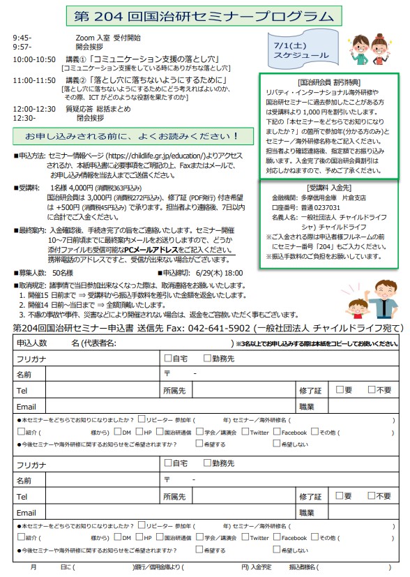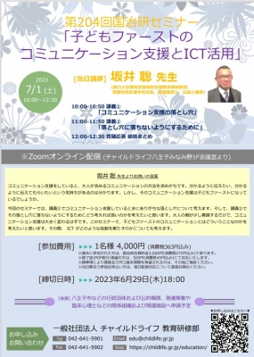 今回のセミナーでは、講義①でコミュニケーション支援しているときにありがちな落とし穴について考えます。そして、講義②でその落とし穴に落ちないようにするためにどう考えれば良いのかを考えたいと思います。大人の側が少し意識するだけで、コミュニケーション支援は大きく変わるはずです。このセミナーで、子どもファーストのコミュニケーションとはどういうことなのかを考えたいと思います。その際、 ICT がどのような役割を果たすのかについても考えます。」