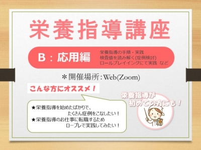 この講座は栄養指導入門・初級講座です。 初めて栄養指導業務を始める方、経験が浅くまだ自信がない方、またどうしても指導が上手くいかずに悩んでいる方、ブランクがある方などに向けた講座です。