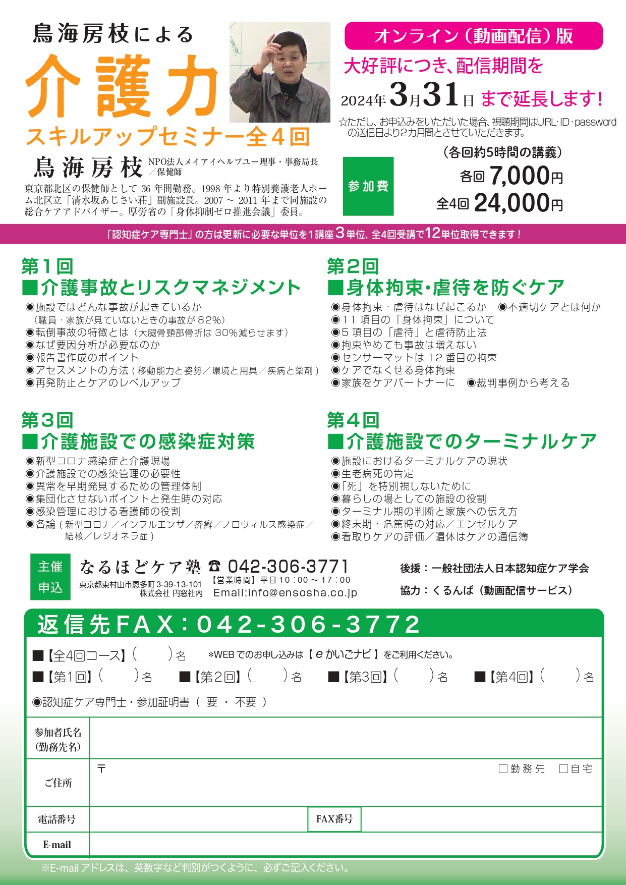 第4回・認知症と生活支援(食事と排泄を中心に)(全5回・藤生先生の認知症ケアシリーズ)