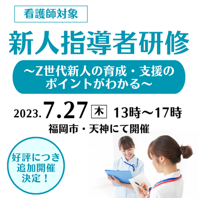 新人が入って3ヶ月。こんなお悩み&困りごとありませんか? □ 新人とどう関わったらいいのか分からない □ どう指導したら新人が成長するのか分からない □ 新人との世代間ギャップや価値観の違いを感じる □ 叱ることも必要だと分かっているけど、嫌われないか不安 □ 新人が指示通りに動いてくれない コロナ禍で学生生活を過ごしてきた2023年度の新人職員。その教育環境や育ってきた時代背景を踏まえたうえで関わると、効果的な指導ができます。 このセミナーでは、新人の承認欲求をみたしてやる気を高めるほめ方や抵抗感なく受け取れる叱り方、成長と改善を促すフィードバックなど新人の成長を支援するスキルを学びます。 すぐに現場で使えるちょっとした声かけから定期的に行う面接の仕方など新人指導者として知っておきたい内容が盛りだくさん。 新人だけでなく指導者自身も成長できます! 【昨年度の参加者の声】 ●新人指導者 Hさん 院内の研修でも、コーチングについては学んだことはありましたが、今回の研修をうけて、承認する大切さやその中でも事実承認であったり、それを含めた上で、振り返りの時間を持つことが大切だと感じました。 ●教育担当課長 Sさん コロナ禍で、十分に実習ができないまま臨床の現場に入った新人の多くが、実際の現場でできないことばかりで、モチベーションも下がっている時期だったので、モチベーションを上げる関わり方などを学べて、明日からの関わり方のヒントになりました。 ●新人指導者 Kさん 今回のセミナーで学んだことを活かして、今担当している若手看護師・今後の新人看護師が、少しでもやりがいや楽しさを見出しながら仕事ができるような関わりを行っていきたいと思いました。