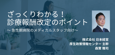 2023年4月に日本経営へ入社後は、厚生政策情報センターで医療政策情報の発信を担当し、医療政策、病院経営に関する講演・研修や医療関連企業のマーケティング支援も行っている。