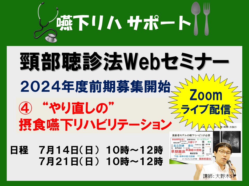 「STさんだから、嚥下の人はみんなお願いね」「私たち全然わからないから、専門の人に来てもらってよかったわ」。 病院や施設で初のSTとして入職すると、看護師さんや栄養士さんなどから、ありがたいのだが大きなプレッシャーを受けることになる。経験年数があっても「嚥下は自信がない・・・」というSTも少なくないなか、たとえ新人でも「いやいや、STといっても1年目なんですけど・・・」という言い訳は残念ながら通用しない。 今回の新講座は、駆け出しのSTをはじめ、これから嚥下チームに加わるスタッフや、すでに嚥下チームの一員だけど困っているスタッフ向けに企画しています。実は当セミナー代表である私、ST大野木も、今年の7月から伊豆の小さな病院で、初のSTとして嚥下チームの体制づくりに取り掛かっています。「発熱→昼食でむせたから→禁食」という根強い流れを変えるため、看護師向けの研修会、VFの検査体制づくり、栄養士とのミールラウンド、摂食機能療法の実施・算定の説明会と奮闘中です。 私自身も”やり直し“の気持ちで学び直し、いかに周りに分かりやすく伝えるかをまとめた内容なので、同じような悩みを抱えた嚥下チームの皆さんにきっと役立つと思います。既存のエビデンスやマニュアルに囚われず、現場ですぐに役立つ知識やスキル、院内の研修会で使える体験実習ネタもたくさん盛り込んでいます。STだけでなく、看護師さんや栄養士さん、PT・OTさん、歯科衛生士さんも気軽にご参加ください。
