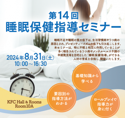 「対象者に合わせた睡眠保健指導を基礎から学びたい」 「不眠についての相談をされたが、どう指導したら良いか悩んでいる」 そんなお悩みをお持ちの方はぜひご受講ください! 睡眠不足や睡眠の質の低下は、生活習慣病やうつ病の原因とされ、プレゼンティーイズムの低下も引き起こします。 本セミナーは、特に不眠と相互に作用していることが多く報告されているうつ病やメンタルヘルス不調の早期発見等を目的とした「睡眠保健指導」ができる人材の育成を目指し、開催いたします。 睡眠の基礎知識や保健指導の進め方を学び、実際の保健指導を想定したロールプレイを行うことで、今の時代に必要不可欠な睡眠保健指導の知識と技術の基礎スキルを身に付けることができます。
