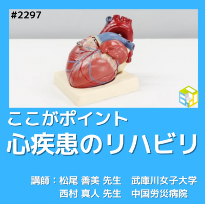 お問い合わせはこちらから▼ https://seminar.ep-och.com/products/seminar2297 2024年①10月10日、②11月14日、③12月9日、④2025年1月27日、⑤2月6日、⑥3月6日 19:00-20:30【オンライン開催】 講師:松尾 善美 先生 武庫川女子大学 健康・スポーツ科学部 教授 / 上級心臓リハビリテーション指導士 西村 真人 先生 中国労災病院 中央リハビリテーション部 部長 / 理学療法士 ========== ●●●●ここがポイント!心疾患のリハビリ評価を基礎から解説●●●● 心疾患を有する高齢者が年々増加しているというデータがあります。 臨床の中で心疾患を保有する患者様に遭遇したことがないというセラピストはいないでしょう。 にもかかわらず、患者様が受けた検査や服薬内容、レントゲン所見などの診かたがわからないという若手セラピストは少なくありません。 それは恥ずかしいことではありません。 なぜなら学生時代には最低限の知識、国家試験レベルまでしか学んでいないのですから、すべてを理解するには知識が足りません。 でも、年々高齢者が増加し、心疾患を有する高齢者も増えてきています。 そのため、我々は運動療法を処方していくためのリスク管理をするために 血圧の変動や心電図だけでなく 画像評価や薬剤の変更など、様々なデータや情報を処理していく必要があります。 本セミナーでは心疾患の検査データの診かたやリスク管理の方法、 運動療法の進め方を徹底的にシリーズでお話しいただけることになりました。 もしあなたが心疾患のリハビリで悩んでいるのであれば本セミナーはおすすめです。 ●●●●理学療法士・作業療法士が心疾患のリハビリでここだけは押さえておきたい知識を網羅しています●●●● 今回は全6回のコースをご用意致しました。 どれも心リハ初心者を脱却してスキルアップを図るために必要な内容です。 一括お申し込み頂くとリーズナブルにご受講頂けます、この機会に1ランク上の心リハを学んでみませんか?