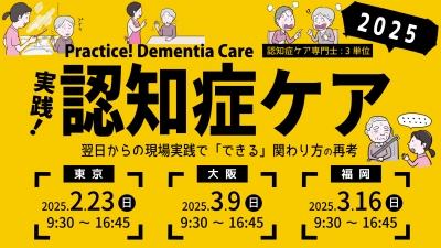 \認知症ご利用者の自立した日常生活を出来るだけ長く保つための関わり方の再考/ 認知症のご利用者が自立した日常生活を長く継続していただくために、私たちに求められる関わり方は、現状のケアに満足しそのケアを続けていくだけでよいのでしょうか。生活機能が徐々に低下していくご利用者にとって、ケアスタッフの適切なサポートや関わり方によって、認知症の症状進行を緩やかにし生活機能の維持に繋がります。また、認知症のご利用者が失いかけていた自信や意欲の向上から自己効力感が維持され、生活における自立心が高まり、ご利用者にとって大きな尊厳の維持につながります。そのために私たちは、ご利用者が自立した生活を営むための支援がより効果的に行えるよう日々のケアを振り返り再考していく必要性がるのではないでしょうか。 本研修会では、4つのテーマから認知症ご利用者への日々の関わり方を再考することで、翌日からの現場ケアがより質の高いケアを提供するための下地を醸成していただきます。