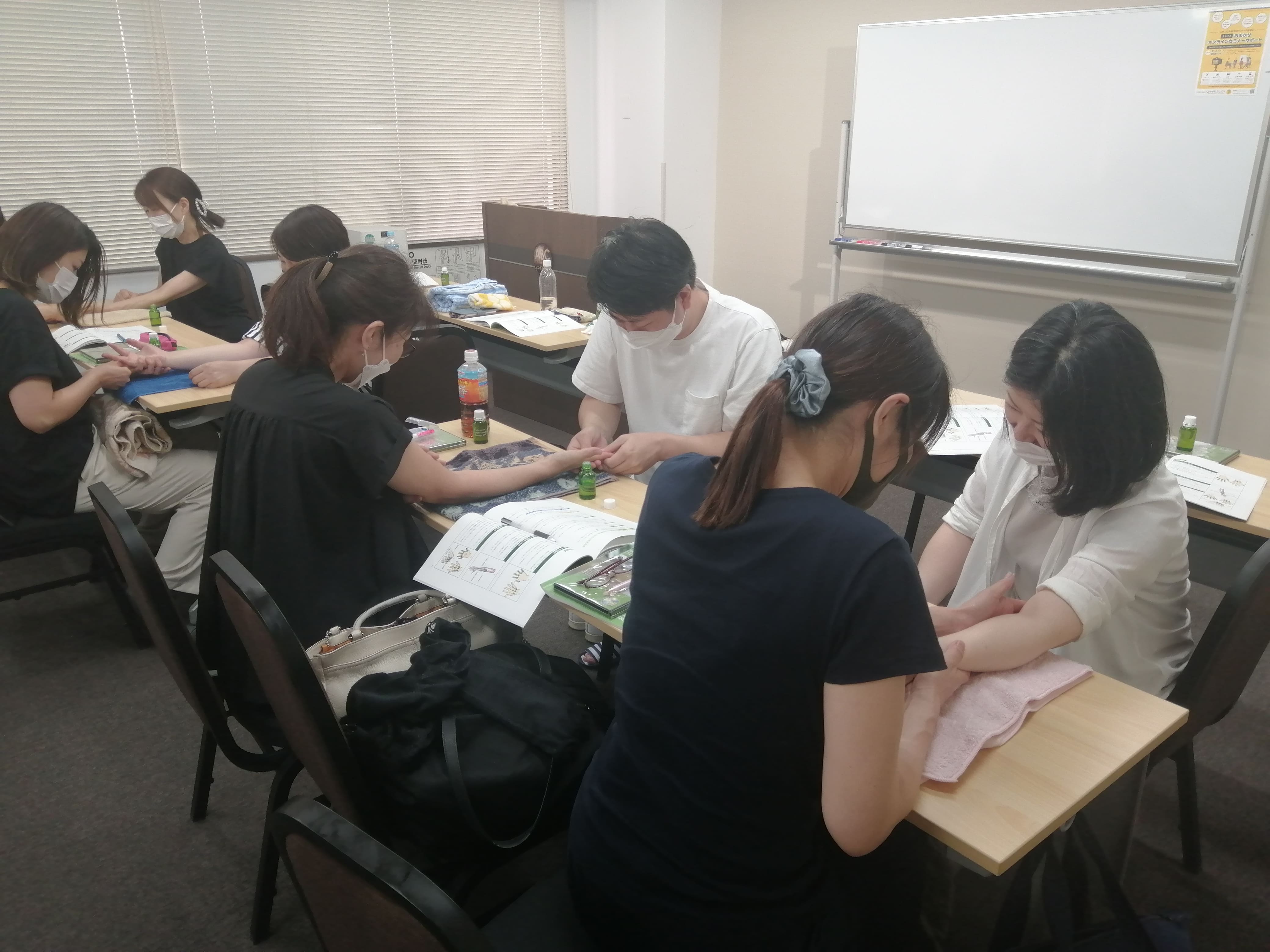 【介護リハビリセラピスト1日講座の内容】 ●介護リハビリセラピーの基礎知識 ●下腿浮腫(足底・足背・下腿前面・下腿後面)の施術方法 ●足底の痛み(足底筋膜炎・中足骨頭痛・モートン病)の施術方法 ●脳卒中の後遺症による麻痺(指・足関節・内反尖足)の施術方法 ●膝関節(変形性膝関節症・関節水腫)の施術方法 ●前腕浮腫(手・前腕)・脳卒中の後遺症による麻痺(指・手関節)の施術方法 ●肩関節痛の施術方法 ●首・肩・背中のこりや痛みの施術方法 ●認知症の予防の施術方法 受講後に何度でも復習することができるように、受講した方全員に通信講座と同じテキスト、実技のDVD、アロマビタミンオイルを差し上げています。 詳細につきましては、協会ホームページでご確認ください。 協会ホームページ:https://www.j-kaigorehabili.com/