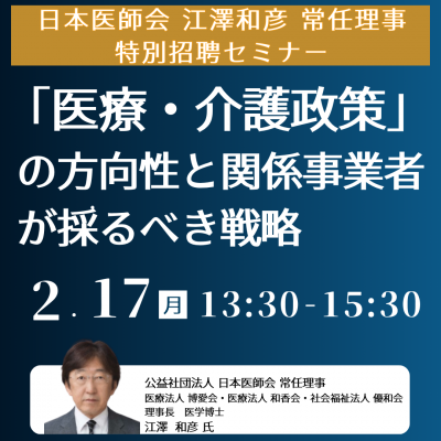 ・日本医師会 常任理事 ・日本慢性期医療協会 常任理事 ・日本介護医療院協会 副会長