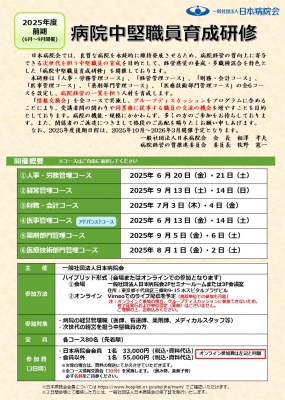 日本病院会 病院中堅職員育成研修 医療技術部門管理コース (8月1日~8月2日開催) 2025年度 前期