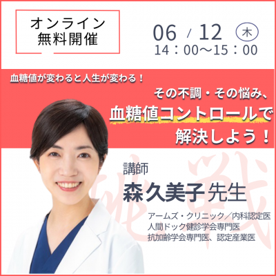 慢性的な疲労感、メンタルの揺らぎ、むくみや肌トラブル…。こうした症状の背景に「血糖値の乱 高下」が関わっていることをご存知でしょうか? 本セミナーでは、健診では見逃されやすい“隠れ血糖不安定”の実態を明らかにし、血糖値を安 定させる生活・栄養・指導のヒントをお伝えします。 【セミナーを通して、主にどのような知識・技術が身に付くか?】 ・血糖値の基本的な仕組みとホルモンの関係 ・血糖値の乱れが引き起こす全身症状の理解 ・血糖値を安定させるための栄養・食事・生活指導法
