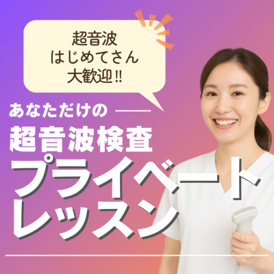 学生以来エコーに触れていない方も安心。あなただけの個別指導で“わからない”が“できた!”に変わる、超音波実技の第一歩。