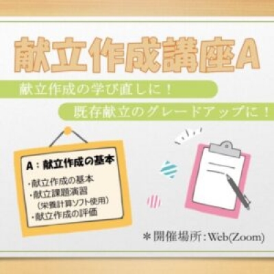 学び直しに最適!! 学校卒業後、一から献立作成をされた経験はございますか? 既存の献立で満足していますか? 治療や健康のための食事提供をする軸となる献立作成は栄養士の重要な業務です。 本講座では、この本質をふまえ、献立作成を基本から改めて学びなおすことで、スキルの向上を図ります。 献立作成の本質を理解し、献立のグレードアップを目指しましょう!!